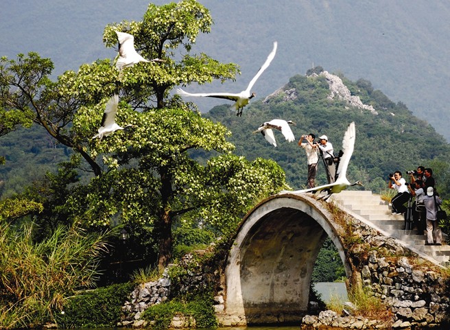 游人可乘坐仿古游船近距離觀看保護(hù)區(qū)內(nèi)的自然候鳥和濕地風(fēng)光,也可以登上鶴島,穿梭于木棧道之中,欣賞一生難得一見的“世界絕活”丹頂鶴編隊飛翔。也可以通過鶴島上設(shè)置的望遠(yuǎn)鏡遠(yuǎn)距離觀賞候鳥。同時,星湖濕地公園也是一個重要的科普教育基地。現(xiàn)規(guī)劃在大攬崗?fù)ㄟ^對現(xiàn)有建筑進(jìn)行改造,建立濕地宣教中心。濕地宣教中心設(shè)多媒體展示中心、宣教圖片展覽室、標(biāo)本室和魚類館,版權(quán)所有山東聊城聊之旅國際旅行社有限公司,轉(zhuǎn)載必究!配置陳列與展示柜、辦公用具以及計算機(jī)、投影機(jī)、電視機(jī)、錄像機(jī)等儀器設(shè)備,通過圖片資料展覽、實物展示和放映展示濕地優(yōu)美環(huán)境和濕地保護(hù)知識的錄像、電影、電視片等,對群眾進(jìn)行集中宣傳教育。規(guī)劃建筑面積600多平方米。星湖濕地公園是廣東肇慶市生態(tài)系統(tǒng)的重要組成部分,是肇慶市天然的“城市之腎”;是肇慶市作為山水名城、國家歷史文化名城、全國優(yōu)秀旅游城市的重要載體;是肇慶市“千里旅游走廊”上的明珠;是我國南方濕地珍稀水禽人工繁殖的國家級基地;是廣東省濕地生態(tài)科普教育基地。所以,星湖濕地公園是游人悠閑、度假、觀光以及增長見聞的好去處,是宣傳濕地保護(hù)的一個重要載體。