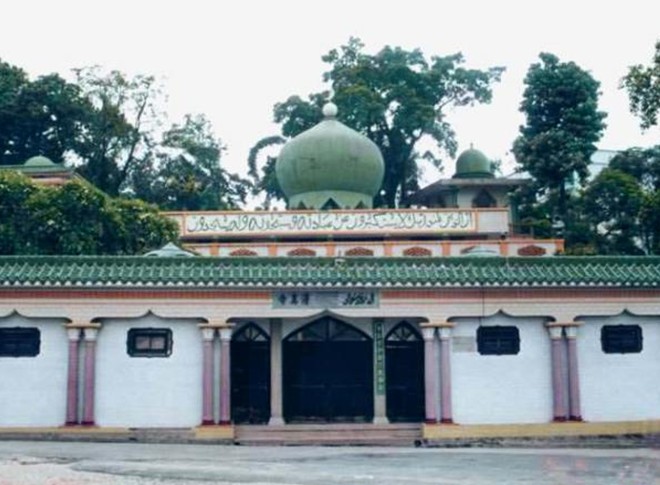 位于廣東肇慶城西端洲區(qū)康樂中路。此寺建于清乾隆三十二年(1767),最初創(chuàng)寺于忠勇坊,后遷至現(xiàn)址。占地面積1285.2平方米。寺內(nèi)有禮拜殿、兩廊房舍等建筑,禮拜殿前檐石柱陰刻楷書檻聯(lián)“勤念禮課齋,七日一朝須敬畏;守忠存仁義,六行三物貴真誠”。殿內(nèi)其中四根石柱上陰刻回文古蘭經(jīng)。寺內(nèi)還存刻于清嘉慶十九年(1814)高2.23米、寬0.27米的木板楹聯(lián)“何須色相昭彰,五拜中嚴然如在:漫道典型迂遠,卅卷內(nèi)自有真?zhèn)?rdquo;。1983年,因建筑物嚴重殘破傾危,遂重建阿拉伯式建筑,1984年9月竣工。寺由禮拜殿、經(jīng)堂、兩廊、浴室、辦公室、阿訇宿舍、廚房、停生閣等建筑群組成,主體建筑禮拜殿,建筑面積434.8平方米,頂部是白色圓形尖塔式頂,以示其真主至大,而圓球尖端頂上的彎形月,則是伊斯蘭教場所的標志。大殿正面設(shè)有三個殿門和大殿南北兩廊口,合為五個門口,比喻念、禮、齋、課、朝五功及五時拜,用鋼筋混凝土建成的禮拜殿,殿內(nèi)不設(shè)偶像,寬廣空曠。