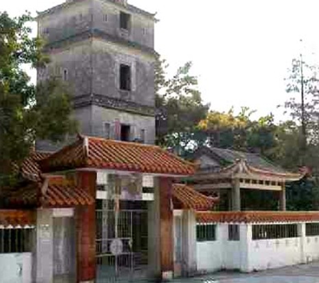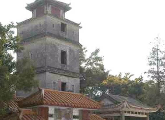又稱聚星閣。位于中山市三鄉(xiāng)鎮(zhèn)鴉崗村,占地面積約2500平方米,始建于道光乙已年(1845年),清咸豐五年(1855年)和同治元年(1862年)重修,閣前置有同治元年(1862年)加建的四角亭一個(gè)。閣通高17.8米,一至四樓每樓面積4平方米,五樓2.5平方米,一層為"文武殿"設(shè)有道光二十五年(1845年)鐵鐘一座,咸豐五年(1855年)坤甸木刻鏤孔浮雕神臺(tái)一張;二層為"觀音殿";三層為"財(cái)帛殿";四、五層為觀光用。