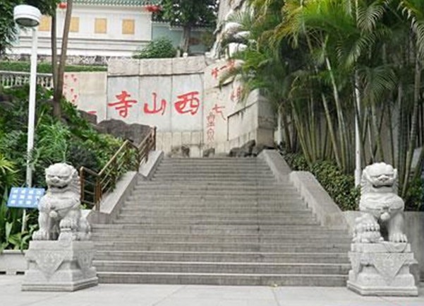 中山西山寺俗稱西山寺,位于廣東省中山市城區(qū)西山公園內(nèi),始建于明朝嘉靖年間,是讀書人喜聚之地。清道光年間,邑人曾望顏曾在此攻讀詩書,至咸豐六年(1856年)他任陜西巡撫署四川總督時(shí),特募資將古寺加以擴(kuò)建。由隱泉庵派僧人心恒為主持,歷代相傳,到1949年已傳至十三代?,F(xiàn)寺內(nèi)有伽蘭殿、韋陀殿、大雄寶殿、準(zhǔn)提殿、觀音殿、六祖殿、地毅殿、塔殿等,頗為壯觀。