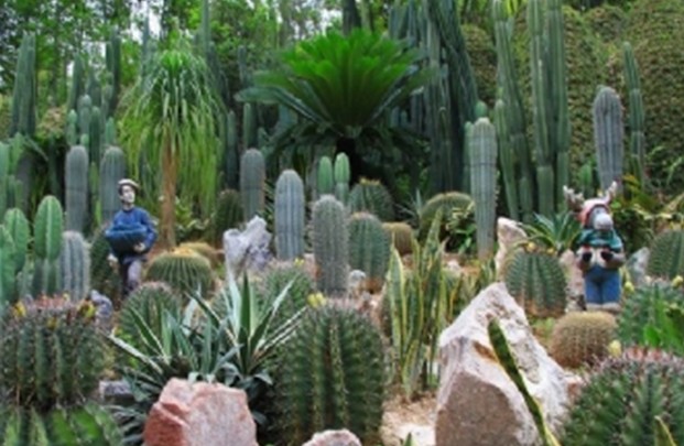 內(nèi)最吸引眼球的是量天尺仙人掌,高8米,南美洲最高30米。傳說神仙用其測量天的高度,因此得名“量天尺”。它每年6~10月份開花,一朵花結(jié)一個果,果實(shí)只有火龍果一半大,但比火龍果美味。除了千姿百態(tài)的仙人掌,園內(nèi)還養(yǎng)了多種動物。此外,園內(nèi)餐廳還提供特別用仙人掌制作的菜肴。其中,仙人掌浸山坑甲魚湯、仙人掌釀山水豆腐最受游客歡迎。
