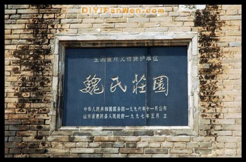 魏氏莊園是目前發(fā)現(xiàn)的中國最大、保存最完整的清代城堡式民居。莊園位于惠民縣城東南30公里220國道南側魏集鎮(zhèn)的魏集村。它是清代布政司理問、武定府同知魏肇慶的私人宅第,建于清光緒十六年至十九年(公元1890-1893年),歷經(jīng)戰(zhàn)爭洗禮和政治運動沖擊,主體建筑保護完好。