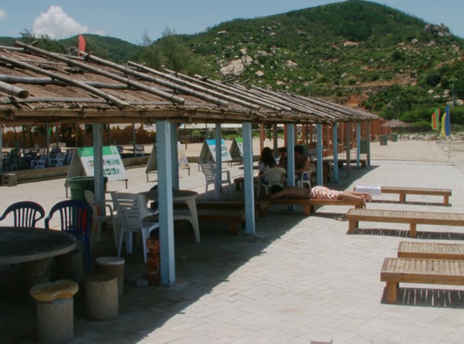 海灘建有多個(gè)六角亭、四角亭、半露天會(huì)議廳(晚上可變舞廳、演出廳)沙灘篝火、煙花、燒烤、各種沙灘體育活動(dòng)。