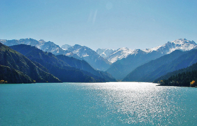中國新疆維吾爾自治區(qū)著名湖泊。在烏魯木齊東北100公里,博格達(dá)峰北坡山腰。湖面海拔1910米,南北長3.5公里,東西寬0.8~1.5公里,最深處103米。湖濱云杉環(huán)繞,雪峰輝映,非常壯觀,為著名避暑和旅游地。天池成因有古冰蝕-終磧堰塞湖和山崩、滑坡堰塞湖兩說。由天池流出的三工河為山麓阜康縣農(nóng)牧業(yè)主要灌溉水源。天山天池風(fēng)景區(qū)以高山湖泊為中心,雪峰倒映,云杉環(huán)擁,碧水似鏡,風(fēng)光如畫。