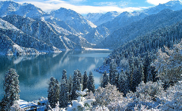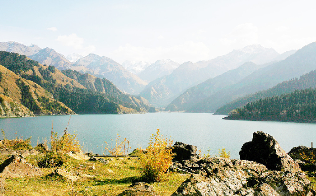 游天池可從烏魯木齊乘汽車前往,上山時(shí)山路蜿蜒曲折,伴隨一條奔騰的溪流,這是來自天池的水,清澈的溪水沖擊巖石時(shí)激起雪白的浪花,使人感到一股清新氣息。