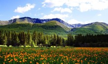 在海拔2800-3500米之間,是博格達(dá)峰北坡游覽區(qū)中的亞高山草甸草原自然景觀區(qū)。景區(qū)山地呈波狀起伏的東西相連的平臺(tái),是山地在上升過程中速度減漫時(shí)被流水等侵蝕形成的,學(xué)名為“夷平面”,俗稱“臺(tái)子”。6-8月為這里的夏季,7月平均溫度3℃- 4℃。這里夏季降水充沛,是良好的夏牧場。景區(qū)內(nèi)植物為多年生植物,很矮小。植物種類多,覆蓋面大,為綠油油的草甸草原景象。因海拔高度高,紫外線強(qiáng)烈,這里植物的花格外鮮艷美麗。有龍膽、紫宛、火絨草、老鸛草、珠芽蓼、金盛花等,姹紫嫣紅,紛呈異彩,點(diǎn)綴在蒿草、苔草、狐草組成的綠色草原上。