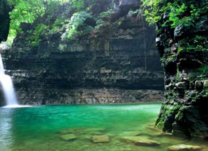 虎跳崖景區(qū)以秀美的山水吸引八方游客。虎跳崖瀑布好似一座珍珠屏風(fēng)掛在山腰,俏儷怡人,濺起的水珠晶瑩剔透,風(fēng)又把它吹的如煙如霧,清澈的溪水宛如銀鏈纏繞在群山腳下,水中游蕩翻轉(zhuǎn)的細(xì)鱗魚在陽(yáng)光的照耀下不時(shí)映出道道銀色的光芒,如詩(shī)如畫。順流而下,便可進(jìn)行20公里流程的三道沖河漂流—龍鳳山水庫(kù)的源頭漂流,沿岸風(fēng)光秀麗,水流清澈透底。時(shí)而激流湍急,驚險(xiǎn)刺激,時(shí)而穩(wěn)流如靜,平緩蕩漾,令人留漣忘返。