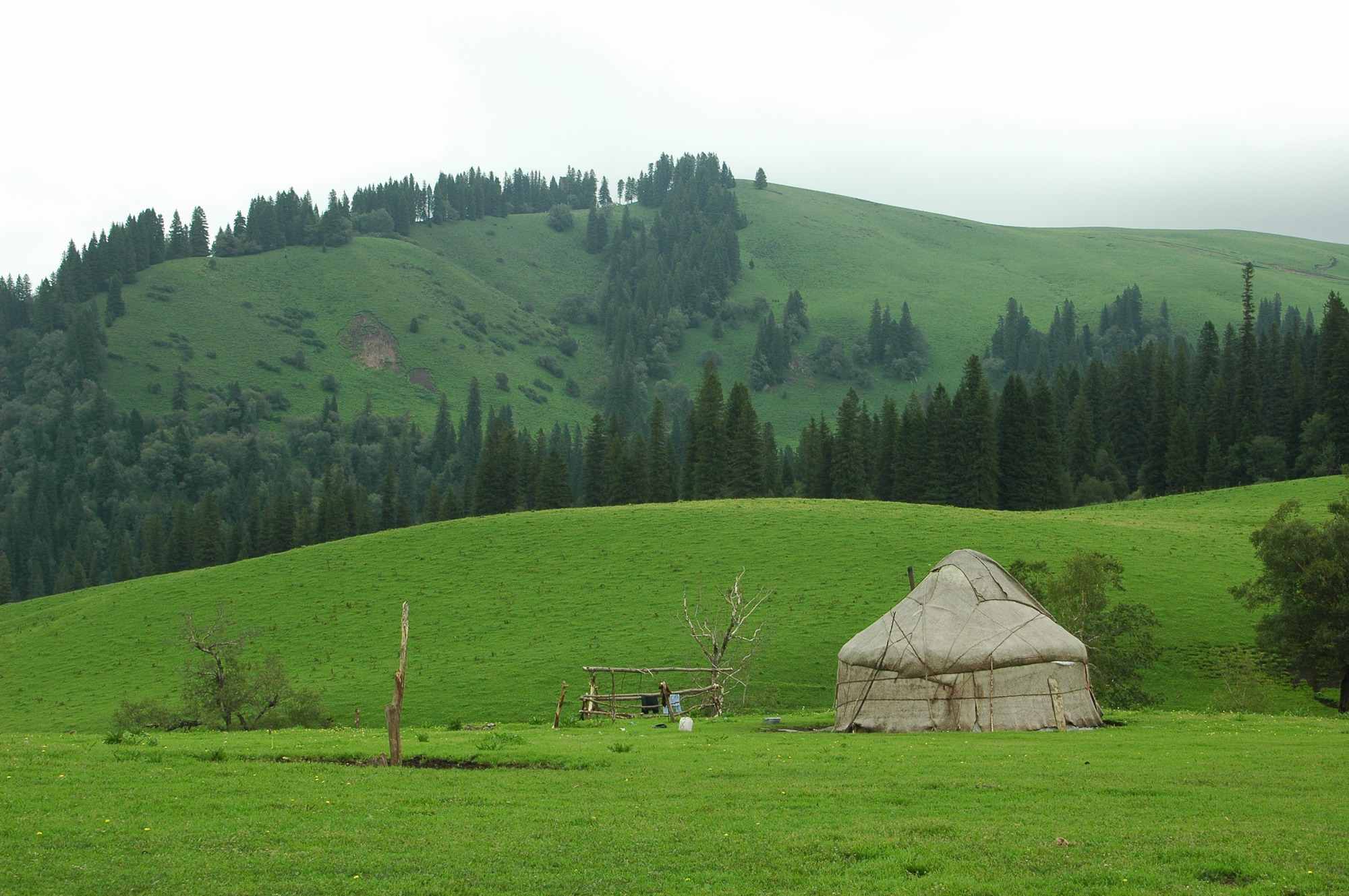 恰普河夏季牧場(chǎng)是名副其實(shí)的空中草原,平均海拔在兩千米以上。在景點(diǎn)歇馬臺(tái)遠(yuǎn)眺,山下蜿蜒西去的鞏爾斯河像一條閃耀銀光的藍(lán)色絲帶飄落在寬闊的山谷之中。兩側(cè)重巒疊翠,云靄騰騰。大有“仰天一長(zhǎng)嘯,萬(wàn)里白云來”之勢(shì)。舉目藍(lán)天如洗,幾羽蒼鷹在悠閑地盤旋。側(cè)目牧草如毯,一群群牛羊在坡地上安逸地徘徊,不時(shí)有牧人縱馬馳騁,驚起一片飛鴻……