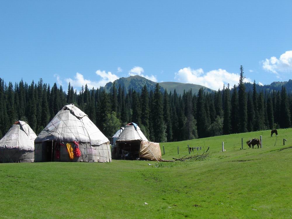 在那拉提的牧野畫意中生活的是熱情奔放的哈薩克人。被他們稱作“宇”的白色氈房,不僅點(diǎn)綴著青山綠水,而且還表明著他們是千百年來生活在這里的主人。即便那拉提成了游人如潮的AAAAA級(jí)風(fēng)景名勝區(qū),他們依然保持牧獵民族的習(xí)俗。景區(qū)內(nèi)的哈薩克人家里都馴養(yǎng)著獵鷹。有游客時(shí),獵鷹是他們招攬照相生意的“名?!保谄綍r(shí)獵鷹仍然是他們捕獵狐貍、兔子的得力助手。無(wú)論如何獵鷹和馴鷹人都成為了那拉提草原之旅的一景。