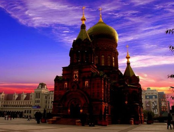 索菲亞廣場位于美麗的松花江南岸,占地5萬平方米,以其獨特的建筑景觀、歐域風情聞名于海內(nèi)外。區(qū)內(nèi)標志性建筑——索菲亞教堂,為全國重點文物保護單位,建于1907年,曾是遠東地區(qū)最大的東正教堂,規(guī)模宏大,雄偉壯觀。中心休閑廣場、建筑藝術(shù)廣場均為景區(qū)內(nèi)敞開式文化廣場,夏日綠草茵茵、花團錦簇.音樂噴泉翩翩起舞、多姿多彩;冬日銀裝素裹、白雪皚皚,大型冰景氣勢恢宏、風光獨特。