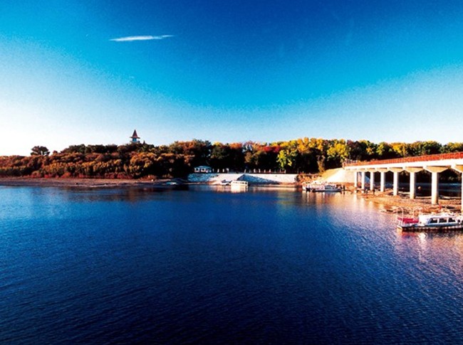 鶴崗名山島位于鶴崗的蘿北名山旅游區(qū)包括名山島和名山沿江公園。名山沿江公園總長有2000多米,分九大景區(qū),45個景點,人文氣息與自然景色兼?zhèn)?。黑龍江江心的名山島距名山鎮(zhèn)1.7公里,是國家3A級旅游景區(qū)。它緊臨國界線,處在大江之中,南側距名山鎮(zhèn)江岸200米,北面與俄羅斯的阿穆爾捷特江岸相距1000米。江水環(huán)繞,古木森森,鳥鳴嚶嚶,野趣橫生,一派質樸、粗獷、天然無飾的自然生態(tài)風光。