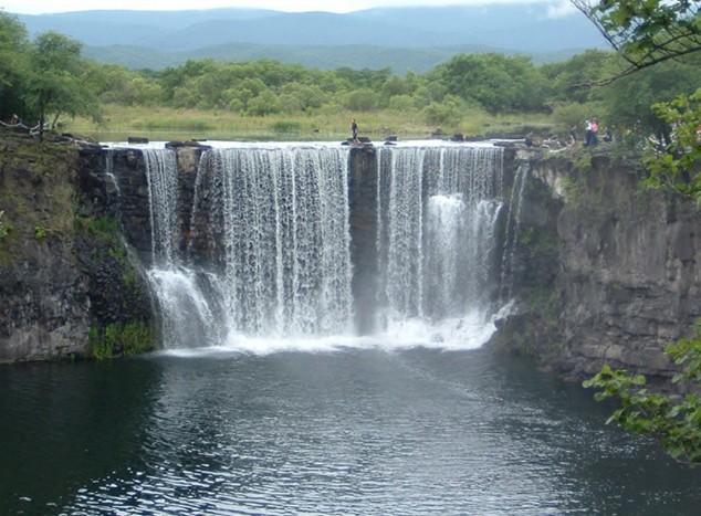吊水樓瀑布,古時土著人名曰"發(fā)庫",位于湖之北端,距"鏡泊山莊"僅三公里。從"鏡泊山莊"乘車,沿著一條山路,便可抵達龍泉山腳下的冷食店"湖光閣"。由"湖光閣"向左轉,駛進盤山曲徑,通過急流上懸架的"飛虹橋",再穿越一段枝葉交錯的綠色長廊,一座古樸雅致的六角亭臺便出現在眼前。此時,瀑布瀉落的轟鳴之聲不絕于耳,撲面的微風夾雜著一股股沁人的清新與甘甜。游人至此多于亭中小憩,然后步行穿過一片闊葉林,呼嘯奔騰、氣勢磅礴的"吊水樓瀑布"便映入眼簾。吊水樓瀑布酷似聞名世界的"尼亞加拉大瀑布"。湖水在熔巖床面翻滾、泡哮,如千軍萬馬之勢向深潭沖來,然后從斷巖峭壁之上飛瀉直下,撲進圓形甌穴之中。潭水浪花四濺,如浮云堆雪,白霧彌漫;又似銀河倒瀉,白練懸空。水聲震耳如有雷鳴。瀑布一般幅寬四十余米落差為十二米。雨季或汛期,瀑布呈現兩股或數股迭落,總幅寬達二百余米。瀑布兩側懸崖巍峨陡峭,怪巖崢嶸。站在崖邊向深潭望去,如臨萬丈深淵,令人頭暈目眩。一棵高大遮天的古榆枝繁葉密酷似一把天然的巨傘,踞險挺立于峭崖亂石之間。斑駁的樹影中,一座小巧的八角亭榭依巖而立,人稱"觀瀑亭"。亭臺至瀑布流口及北沿筑有鐵環(huán)鎖鏈護欄。古榆下尚有一條經人工鑿成的石頭階梯蜿蜒伸向崖底的黑石潭邊,枯水期間,潭水波平如鏡。據測黑石潭深達六十米,直徑也有一百余米。每逢晴天麗日,光照相瀑布,則有色彩斑斕的彩虹出現。凡到此游覽者,無不驚嘆其壯美的景色。詩人曾為它留下"飛落千堆雪,雷鳴百里秋。深潭霞飛霧漫,更有露浸岸秀"的優(yōu)美詩篇。瀑布之成因,據考察證實,是鏡泊湖火山群爆發(fā)時,噴發(fā)出的熔巖在流動進程中,接觸空氣的部分首先冷卻成硬殼,而硬殼內流動的熔巖中尚有一部分氣體仍未得到逸散,及至熔巖全部硬結后,這些氣體便從硬殼中排除,形成許多氣孔和空洞。版權所有山東聊城聊之旅國際旅行社有限公司,轉載必究!這些氣孔和空洞后又塌陷,形成了大小不等的熔巖洞。當湖水從熔巖洞的斷面跌下熔巖洞時,便形成了十分壯觀的瀑布。冬季枯水期,瀑布不見了,卻可以觀賞到另一番景致。在熔巖床上,游人可發(fā)現許多被常年流水沖擊的熔巖塊因磨蝕而形成的大小深淺不等的溶洞。這些溶洞,猶如人工鑿琢般光滑圓潤,十分別致。環(huán)潭的黑石壁,又是一個天然的回音壁,它會把游人的輕歌笑語,經圓型石壁的折射,清晰地傳到自己的耳邊。石壁可與北京天壇公園的"回音壁"相提媲美。