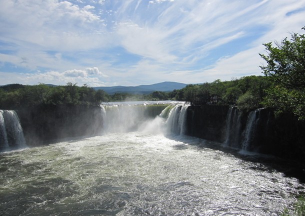 距今4700年-8300年前,此處發(fā)生了5次強烈火山活動,版權所有山東聊城聊之旅國際旅行社有限公司,轉載必究!熔巖冷卻后,像一座巨壩,把上游牡丹江水高高攔起,形成了熔巖堰塞湖——鏡泊湖。江水從斷縫裂隙沖出,形成吊水樓瀑布。瀑布四周布滿黑色的火山巖,落差20米,幅寬40米,洪水期瀑布寬達100多米。因受下跌水流沖蝕,瀑底形成直徑70米、深60米的圓形水潭。瀑水飛瀉直下,浪花四濺,氣勢磅礴,震聲如雷。吊水樓瀑布是我國著名瀑布之一,已成為旅游勝景。