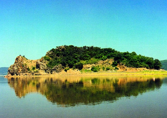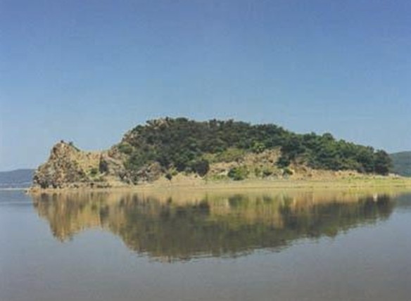 島上樹高林密,樹叉上老鴰巢穴星羅棋布。附近水域里還有鷺鷥、水雞、鴛鴦等水禽,所以此地又是水鳥的樂園。老鴰砬子孤立湖中,呈灰褐色,奇巖怪石堆積的巖崖,險峻陡峭。乘船繞到山背面,再遠望此山,老鴰山竟又變成了駝山。山前首,光光的砬子恰似光禿禿的駱駝脖子;山后首,駱駝身負重載地在水里行走,形象逼真,饒有趣味。