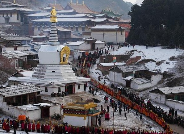 位于甘肅碌曲縣城南90公里處的郎木寺鄉(xiāng),西傾山支脈郭爾莽梁北麓的白龍江畔,地處甘、青、川三省邊界。郎木寺為藏傳佛教寺院。“郎木”為藏語“仙女”之意,因其山洞中有石巖酷似亭亭玉女,民間謂為仙女所化,故名。寺后林蔭深處有一虎穴,藏語稱“德合倉”,故該寺之名可譯為“虎穴中的仙女”。郎木寺與四川境內(nèi)的格爾底寺隔白龍江相望,早年曾盛極一時。1969年被毀,現(xiàn)得以逐年恢復(fù)。寺前有一山色,形似僧帽,寺東紅色砂礫巖壁高峙,寺西石峰高峻挺拔,版權(quán)所有山東聊城聊之旅國際旅行社有限公司,轉(zhuǎn)載必究!嶙峋嵯峨。山下大片松林蔥蘢茂密。