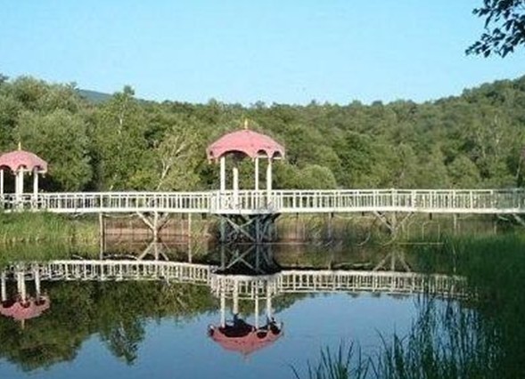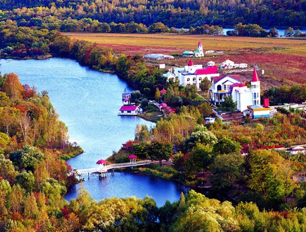 臨近回龍灣,只見具有古典建筑風格,版權所有山東聊城聊之旅國際旅行社有限公司,轉載必究!上書“回龍灣山莊”幾個大字的門樓赫赫然映入眼簾。沿石甬路來到渡口-----“湯旺第一渡”,是進入回龍灣山莊的惟一渡口。位于山莊牌樓東500米處,在河兩岸各有一座造型別致的懸索墩臺,上有振翅飛的大型雕塑天鵝,將100余米鋼纜銜于口內(nèi),東拉西扯,蕩悠悠橫于碧波之上。木制懸浮碼頭,隨水勢起落調(diào)整高低。鐵殼雙舟并聯(lián),每次可載60人左右,雙舟在河水沖擊下,滑輪滾動,兩岸擺渡,既安全又充滿情趣,真可謂舟在水中游,人在畫中走。渡過百余米寬的湯旺河,棄舟登岸,映入眼簾的是刻有黑龍江省副省長、原伊春市市委書記王東華同志的題詞“青山無限美,碧水寄真情”的石牌。再往前走就來到了回龍灣正門,正門上書“湖山勝境”,言外之意,跨入此門才算真正來到回龍灣山莊。沿著由水泥預制板鋪成的小路往前走,展現(xiàn)在我們面前的是一尊造型獨特、妙趣橫生的“黑龍騰天”雕塑。黑龍眼望長空,尾巴翹立,欲騰飛離去,卻又顯出無限的眷戀之情,意味著不愿離開這美麗的地方。臨清別墅:屬回龍灣風標志性建筑,臨河而建,外觀為典型的歐式風格。哥特式的紅色尖頂及拜占庭式的主體框架,配以乳白色的歐式風格。哥特式的紅色尖頂及拜占庭式的主體框架,配以乳白色的白色的墻壁、碩大的藍色落地窗,顯示出浪漫的一國情調(diào),其每層風格各異。一樓為會客室,寬敞明亮,一幅巨大的太公垂釣木雕附于廳壁,角落有日式內(nèi)室稱為“和寮”;二樓的“漢閣”正墻上懸掛一幅精心裱褙的字軸,上面完整地記敘了回龍灣開建設歷史;三樓為“獵舍”,彷舊時獵舍居室風格裝修,古樸典雅,耐人尋味。蒙古村落:位于回龍灣南于東皋臺隔灣相望,有五座敖包組成。錯落有致地排列于萋萋芳草中。一架勒車閑置在包前,幾只散養(yǎng)的牛羊在沒膝深的野草叢里悠然吃草,裊裊炊煙從敖包頂端升起.不時有身著鮮艷民族服裝的姑娘手托著香氣撲鼻的菜肴出入包中,儼然成吉思汗的子孫們活生生的場景.此時那首有名的"敕勒川,陰山下,天似穹廬,籠蓋四野,天蒼蒼,野茫茫,風吹草低見牛羊"的 《敕勒歌》便會自然涌上腦海.敖包內(nèi)裝飾極具民族風格,是游人就餐之地.熏羊腿、燒牛寶、手把肉、烤全羊等佳肴,其味美純正,風味十足,定會使你大飽口福.