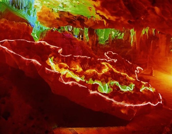 景區(qū)游玩行程:→從碼頭乘船進(jìn)入水溶洞,乘船水路約800米,花費時間為10分鐘→水路結(jié)束后游覽旱洞,旱路全長約1200米,旱洞內(nèi)游玩花費時間約為1個小時→水旱溶洞游玩后出洞步行沿游道回停車場,步行時間大約為30分鐘。總花費時間大約為:2.5小時!