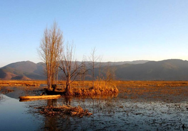 草海是貴州最大的淡水天然湖,是一個(gè)典型的高原濕地生態(tài)系統(tǒng),湖的南岸有一個(gè)約0.33平方公里的半島,最窄處僅有200米寬的地段與陸地相連,草海湖盆面積45 km2,湖底海拔2170m,平均水深2m,正常水位高程為2171m,相應(yīng)水面積20 km2。1992年,國務(wù)院批準(zhǔn)為國家級(jí)自然保護(hù)區(qū)。草海位于貴州西部威寧縣境內(nèi)。是貴州最大的天然淡水湖,海拔2171.7米,覆蓋面積保持在30平方公里以上,以水草繁茂而得名。草海四面青山環(huán)抱,林木茂密。湖中盛產(chǎn)魚蝦、蒲草等水生動(dòng)植物,棲息著100多種珍奇水鳥,中國特有的高原候鳥黑頸鶴,每年都要在這里越冬。主要保護(hù)以黑頸鶴為主的濕地鳥類。草海素有“鳥的王國”之稱,共有鳥類100余種、珍稀鳥類70余種,特別珍稀的鳥類有黑頸鶴、灰鶴、丹頂鶴、黃斑葦雉、黑翅長(zhǎng)腳鷸和草鷺,還有大量的大雁和野鴨,是世界人禽共生、和諧相處的十大候鳥活動(dòng)場(chǎng)地之一,是冬春觀鳥、夏秋避暑的最佳選擇地。草海冬季溫暖,氣候宜人。暮春時(shí)節(jié),草海周圍開放著大面積千姿百態(tài)、絢麗動(dòng)人的杜鵑花。秋天的草海最美,湖中的水草在碧水中開出一朵朵、一串串、一片片的黃花、紅花和白花,船行其中,花隨水波浮動(dòng),如入仙境。草海的冬天,則是觀賞黑頸鶴等300余種鳥類的最好季節(jié)。草海四面青山環(huán)抱,林木茂密,水天一色,翠峰鵠立,版權(quán)所有山東聊城聊之旅國際旅行社有限公司,轉(zhuǎn)載必究!草海西部有一孤島叫“陽關(guān)山”島上竹籬茅舍,雞犬相聞,湖中白帆點(diǎn)點(diǎn),波光粼粼,一片寧靜淡泊的世外桃源景象。草海東南水面有六洞橋及望海樓,沿橋煙柳長(zhǎng)堤,垂柳依依,長(zhǎng)堤?hào)|端有寺廟,相傳呂洞賓曾到此一游。草海盛產(chǎn)魚蝦,水禽,蒲草等水生動(dòng)植物,棲息著珍奇水鳥。其中最多也最著名的有黑頸鶴和野鴨等。這里的氣候濕潤(rùn)溫和,故一到暮春時(shí)節(jié),草海便整個(gè)地被千姿百態(tài)的杜鵑花覆蓋著。為草海沉寂的大地平添了幾許活力與生機(jī)。草海附近的彝族風(fēng)景迷人,每年端陽節(jié),彝族群眾在這里舉行賽馬,青年男女在蘆笙山歌中翩翩起舞,互傳眉目之歡。