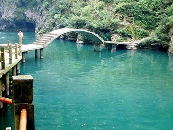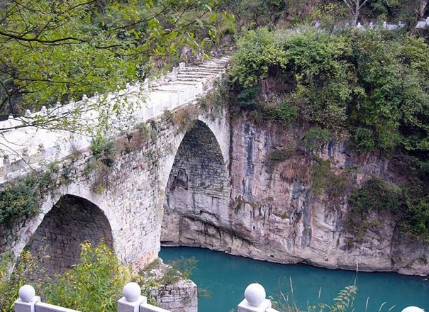 其中心景點為三江匯合處,三水斗奇,景致頗佳。溯三江而上,南連魚梁江古渡口響琴峽,北望沙河之濱的道教圣地福泉山,西走諸梁江畔仙人洞。在三江匯合處,絕壁高峻,雄渾磅礴,江心兀立巨石一塊,高約數(shù)十米,稱“將軍過河”,又有張三豐趕羊遺下的“金鞭石”之說。距沙河水約50米處,有一道瀑布,其下橫生一石,稱“金龜戲瀑”。 灑金谷的景物都有一個個美麗的傳說,如“牛王投井”、“黑熊抱美女”、“豆腐橋”、“草鞋井”等等。古城垣、古橋、古驛道、古摩崖石刻,讓游客置身一個遠離現(xiàn)代喧囂都市的凈土。“豆腐橋”更以其精湛的造橋工藝載入了中國橋梁史。版權(quán)所有山東聊城聊之旅國際旅行社有限公司,轉(zhuǎn)載必究!在橋頭還保存著歷代騷人墨客留下的詠橋詩篇。