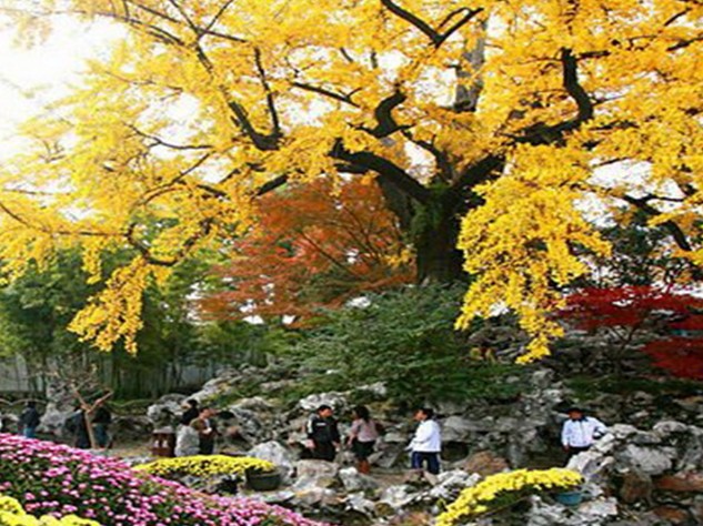 盤縣古銀杏風(fēng)景名勝區(qū)位于安順盤縣城關(guān)鎮(zhèn)35公里之石橋鎮(zhèn)妥樂(lè)村,該景區(qū)面積約146平方公里,包括石橋樂(lè)民鎮(zhèn)景區(qū)、水塘鎮(zhèn)景區(qū)、城關(guān)景區(qū)、火鋪鎮(zhèn)景區(qū)。景區(qū)內(nèi)生長(zhǎng)著上千株古銀杏樹(shù),最小的有300多歲,年長(zhǎng)的達(dá)上千歲。專家認(rèn)為,如此集中連片且與村寨融為一體的古銀杏群落,在世界上十分罕見(jiàn)。當(dāng)?shù)卣?jì)劃為此申報(bào)上海大世界吉尼斯記錄。貴州省已經(jīng)把盤縣古銀杏風(fēng)景名勝區(qū)列為省級(jí)風(fēng)景區(qū)。銀杏樹(shù)是3000萬(wàn)年前地球遺留下來(lái)的古植物, 人稱“活化石”,銀杏樹(shù)的樹(shù)形、葉片奇特、精巧, 四季分明,春天青翠,秋天金黃,其果實(shí)“白果’’可以入藥,是不可多得的觀賞樹(shù)種。盤縣古銀杏風(fēng)景名勝區(qū)內(nèi)的銀杏樹(shù)極其獨(dú)特。從小徑、田埂、屋基下、石階上,向四面八方伸展出來(lái),把整個(gè)妥樂(lè)村托在了樹(shù)根之上。夏日里層層疊疊的綠葉現(xiàn)在全變成了金黃色,落葉鋪滿了石板小徑、黑瓦的房屋、收獲后的稻田……就連村中清澈透明的小溪、溪上的小石橋,也被扇形的銀杏葉裝點(diǎn)成了金色。據(jù)介紹,出售銀杏果實(shí),是這當(dāng)?shù)卮迕竦闹饕?jīng)濟(jì)來(lái)源之一,因而村民們對(duì)古銀杏樹(shù)倍加愛(ài)惜。銀杏全身是寶,版權(quán)所有山東聊城聊之旅國(guó)際旅行社有限公司,轉(zhuǎn)載必究!果仁稱“白果”,是珍貴的藥物和不可多得的保健佐食佳品。從銀杏葉中能提煉出治療心血管病的藥物。當(dāng)?shù)卮謇锶硕嚅L(zhǎng)壽,平均壽命70至80歲。景區(qū)內(nèi)妥樂(lè)村最長(zhǎng)壽的老人106歲,面色紅潤(rùn),每天喝二兩酒,每頓吃2碗米飯、一碗肉、兩個(gè)土豆。為了改善古銀杏樹(shù)的生態(tài)環(huán)境,當(dāng)?shù)卣?jì)劃搬出大約三分之二的村民,只保留古樸的木瓦房和少量村民。希望這個(gè)自然界留給人們的奇特村莊可以一直留存下去,為游人和當(dāng)?shù)厝藥ソo多的享受。