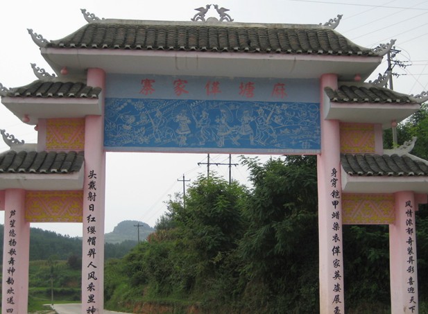 麻塘革家寨位于凱里市城北的龍場鎮(zhèn)境內(nèi),在虎莊、洛榜公路的東側(cè)距凱里市區(qū)21公里,距龍場鎮(zhèn)政府所在地2公里。這個革家寨居住著400多人。聚居在這里的革家人,特別突出的是他們有著體現(xiàn)民族特征的完整服飾。在麻塘我們還可以欣賞到革家的蘆笙舞、板凳舞古歌、飛歌、酒歌、情歌、迎客歌以及革家婦女精美的蠟染和刺繡。革家是一個能歌善舞、勤勞古樸的民族。革家女子服裝比較奇特,少女頭帶紅纓帽,結(jié)了婚的婦女頭戴花冠帕,上穿蠟染刺繡花衣,并罩以冠首鎧甲式的披肩,下著百褶短裙.腰系絲帶、流蘇圍腰巾,頸配銀飾項圈、小腿扎刺繡綁腿。革家男子和革家女子的頭飾上有射日圖,服飾背部也有射日圖,神龕上供奉的紅弓白箭便是他們對祖先的紀(jì)念革家老人過世以后,在墓碑上也刻有太陽圖。有興趣進(jìn)一步了解革家傳說與風(fēng)俗風(fēng)情的朋友,還可以深入細(xì)致地去體驗、去感受、去挖掘。