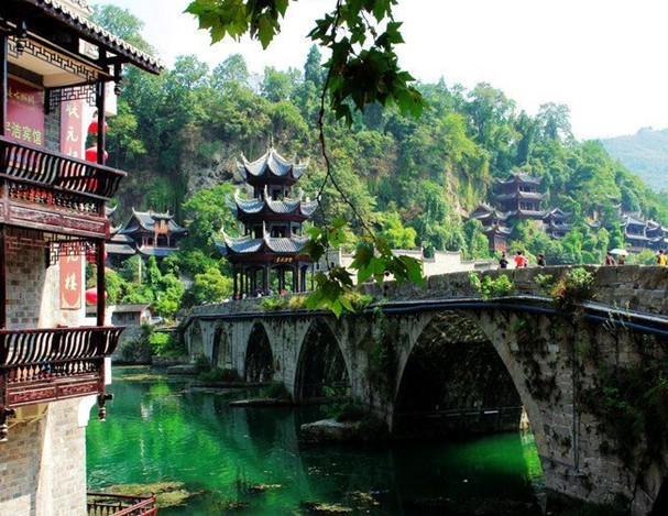 文學名著《儒林外史》總共有50回,卻用了3回的篇幅描寫鎮(zhèn)遠。在第四十三回,吳敬梓寫道了"龍神嫁妹"之地--鐵溪。地處鎮(zhèn)遠古城東北角4公里處,流經(jīng)21公里匯入舞陽河,有甘溪、馬路河、龍池、翁仲河、獨柱峰等景點,景致各有千秋。以翁仲河的溶洞奇、龍池水的寶藍和深不可測,以及郁蒼幽深的森林和峽谷令人神往。鐵溪的名山勝水早在五百年前就吸引了眾多南來北往的游人,許多名人雅士曾到此游覽逗留。