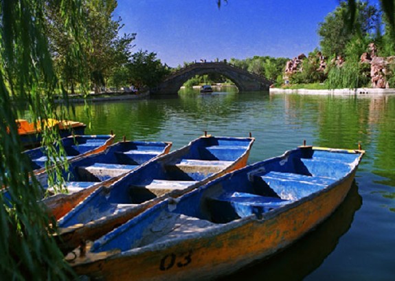 昌吉市人民公園 建于一九八四年,是新疆昌吉回族自治州范圍內(nèi)面積最大,各項(xiàng)游樂設(shè)施最全的獨(dú)具古典特色的文化公園。園內(nèi)景致清幽,碧樹成蔭,2.6公頃的人工湖清澈見底,湖邊有垂柳和繁花點(diǎn)綴,人工堆山地形起伏,松柏覆蓋;山下亭閣、長廊、小橋流水;在綠蔭叢中,有民族風(fēng)情的蒙古包、農(nóng)家樂又一村,讓人們隨意野炊,享受無憂無慮的草原生活。