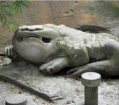 玉蟾山在歷史上曾是川南佛教名山。據(jù)史料記載,從唐代景福二年起,已建有圓通寺。每年觀音盛會,川南各地香客游人云集于此,誦經(jīng)作法,盛況空前。故而玉蟾又有“小寶頂”之美稱。如今,玉蟾山上遠(yuǎn)留有曾經(jīng)輝煌的 印跡。宋代大文豪、書法家黃庭堅(字山谷)醉留“玉蟾”;明代新都狀元楊慎(字升庵)狂寫“金鰲峰”。到清代,山上寺廟林立。羅漢街內(nèi)一臺一重殿,一級一重天;廟宇巍峨,氣象萬千。曾號稱“大和尚五萬五,小和尚不消數(shù)”。暮鼓晨鐘,香煙繚繞,香客如云,佛事之盛,令人嘆絕。