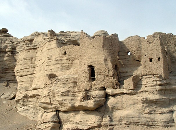艾斯克霞爾古城堡 位于新疆哈密地區(qū)五堡西南23公里的東魔鬼城中,地理坐標(biāo)東經(jīng)92"35' 12”,北緯42‘44’19”,海拔350米,艾斯克霞爾系維語(yǔ)“破舊的古城”之意。艾斯克霞爾古城堡處在一片雅丹地貌的陡壁土巖丘中,背依雅丹而建,遠(yuǎn)處望去,城堡和雅丹相融一體無(wú)法區(qū)分。城堡坐南朝北,為上下二層土坯建筑、殘高6~8米,建在離地面5米多的雅丹 山丘的中上部。