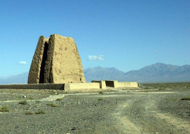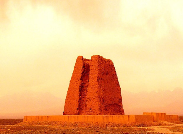 哈密地區(qū)最早的烽燧建于唐代,現(xiàn)境內(nèi)尚遺存唐烽燧4座,這就是哈密二堡的拉克蘇木烽燧、柳樹(shù)泉的下馬不拉克烽燧、巴里昆三塘湖烽燧、伊吾前山闊吐?tīng)栃ぜ{烽燧。它們距今已有1200多年的歷史。而現(xiàn)今保存的絕大部分烽燧則都是清代建筑的。目前烽燧分布密度最高的是巴里坤縣城往西至薩爾喬克一線,這里每隔2—3千米就有一座,連綿相望有13座之多,城如岑參詩(shī)所云:“寒驛遠(yuǎn)如點(diǎn),邊烽互相望”,蔚為絲綢之路的一大壯觀!薩爾喬克烽隧和巴里坤南湖濱的兩個(gè)烽燧形狀基本相同,基座成正方形,隧體為向上收縮的棱柱形,均為夯土建筑,夯土中夾有紅柳枝,并多用圓木構(gòu)架。薩爾喬克烽隧長(zhǎng)寬,各8米,高7米多,隧體上下穿架著四層直徑8厘米左右的木棍。巴里坤湖濱烽隧離公路400米,隧題高大完整,長(zhǎng)寬均達(dá)10米以上,高9米多,隧體中穿鑿的圓木直徑粗達(dá)25厘米,烽隧東南還有積新薪院落遺址。在落日余暉下串聯(lián)一線的巴里坤烽隧顯得格外的古樸、嚴(yán)整,它再現(xiàn)了古絲路昔日的輝煌。