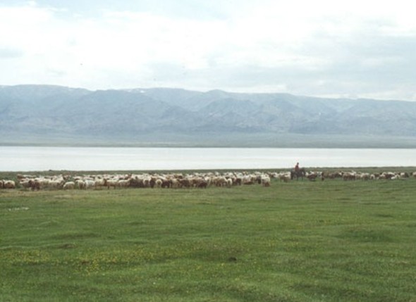 湖水無臭,半透明,因蘊(yùn)藏著378萬噸的鹽礦和芒硝,而使得其水有苦堿味,為極咸的堿性水。該湖既無出口,也無入口,是由地下泉水匯集而成。車過鹽池鄉(xiāng),遠(yuǎn)遠(yuǎn)望去一湖碧水、水天相連,沿著沒膝深的草兒進(jìn)入湖畔,草長鶯飛,紫色、黃色、蘭色的馬蓮花迎風(fēng)綻放,香氣襲人。幻彩湖的神奇之處在于,它隨著天氣的變化會呈現(xiàn)出不同的色彩。