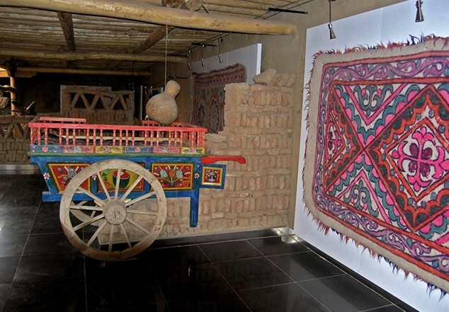鄉(xiāng)巴藝棧是大漠土藝館歷時兩年建造而成的,可以說它是新疆維吾爾民俗藝術(shù)的精華薈萃之地,可讓游客在飽覽新疆民俗展示的同時,還可以親歷參與民間手工藝的制作流程。展品括土陶制品、桑皮紙、民族傳統(tǒng)服裝、鞋帽、艾德萊絲綢、土織機(jī)、土印花布、花氈、土機(jī)琢玉、帕拉斯織毯土機(jī),木制品如木箱、搖床、旋木碗土機(jī),金屬制品如銅壺、銅盤等等。這些民俗藝術(shù)品是土藝館歷時十載從民間收集來的,其中有的已消失,有的瀕臨滅絕,在民間已稀有且難以見到,鄉(xiāng)巴藝棧是大漠土藝館為挽救民族民間藝術(shù)遺產(chǎn)所作的一項(xiàng)工作,是維吾爾民俗的一個縮影。