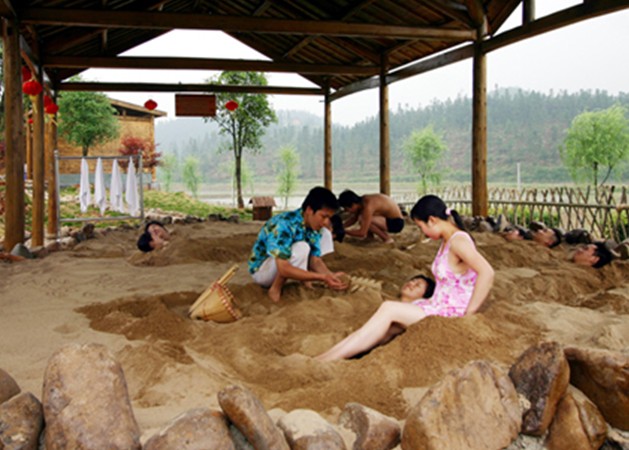 沙療,即沙埋療法,是西北內(nèi)陸沙漠地區(qū)人民利用當(dāng)?shù)氐莫?dú)特氣候條件、地理?xiàng)l件治療疾病的一種方法。就是將病體部位埋入沙中,利用陽光、干熱、壓力、磁力〔沙療所沙比外地沙含磁礦高9倍〕的綜合作用治療疾病的一種民間治療方法。用以治療風(fēng)濕性關(guān)節(jié)炎、慢性腰腿痛等,據(jù)說有效率達(dá)90%以上。吐魯番市西北16公里處,有兩座黑灰色大沙丘,是理想的沙療地。當(dāng)?shù)氐販馗?。黑灰色沙丘熱量高,沙中富含礦物質(zhì),埋沙時沙粒對身體有摩擦作用,所以專家認(rèn)為這是一種集熱療、磁療、按摩于一體的綜合理療法。沙療場地系風(fēng)成固定沙丘,長約200米,寬60-80米,比高8-10米。據(jù)多年氣象資料,每年6月5日至8月20日,吐魯番高溫、干熱,白天氣溫高達(dá)38-42度時,表層沙溫高達(dá)75-82度。每天北京時間5點(diǎn)后,沙堆10米深處的沙溫仍在60-80度之間。