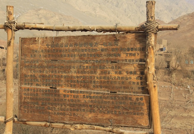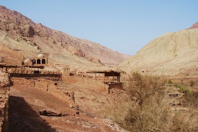 是位于大峽谷南出口溝谷中的一個古老寧靜的維吾爾族村落,有著1700多年的歷史,是迄今新疆現(xiàn)存的最古老的維吾爾族村落。它分布在綠塔聳立的清真大寺四周,約有二百余戶人家。這個村莊,完整地保留了古老的維吾爾族傳統(tǒng)和民俗風情。人們常常日出而息、日落而作,使用古老的維吾爾語交際,穿著最具民族特色的服飾,走親訪友依然是古典的驢車代步。 在這里生活的老人、青年、兒童的臉上,始終洋溢著平靜、自足、幸福的神情,給人以純樸、悠閑、與世無爭的美好印象。在古老的村落中,居民們繼承了兩千多年來用黃粘土建造房屋的傳統(tǒng)習慣。一些建筑還遺留著佛教文化和伊斯蘭教文化交相融合的印記。房屋建筑均是以黃粘土制坯建成的窯房,有大有小,有高有矮;有一層的,也有兩層以上的;有獨立成房的,也有沿山勢連成一片的。其特點是經(jīng)濟實惠、冬暖夏涼。