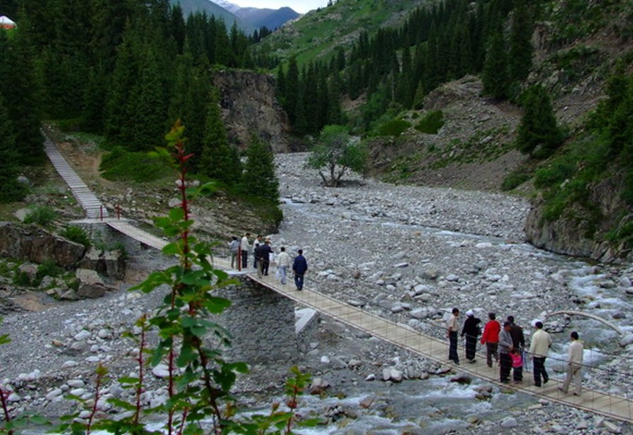 夏提風(fēng)景區(qū)位于溫泉縣哈日布呼鎮(zhèn)西北,阿爾夏提山以西,海拔1620米,由阿爾夏提V型河谷的中游部分河段組成,主要植被為云杉、胡楊、河柳等樹種。地?zé)釡厝哐?,其中以“仙泉”座落群泉之首,該泉海?695米,泉水從一塊石板裂縫中噴涌而出,景象壯觀。水溫38℃~42℃,可治療風(fēng)濕性關(guān)節(jié)炎,婦女不育癥等其他疾病,深受游人的歡迎。