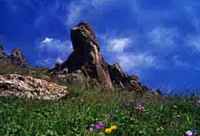 相傳王母娘娘出來瑤池時,只見天池四周全是犬牙交錯的山峰,地傾天斜,池水黑浪滾滾,一片妖氣。原來是黑魚精在作怪,王母娘娘脫下一只云頭繡鞋,扔入池中,將黑魚精捉住。接著王母娘娘在天池西面山上立下一塊巨石,用簪子劈成三塊,形成鼎足之勢,頂起西天,致使天下升平。后來一位道人在三塊巨石中立一長桿,版權(quán)所有山東聊城聊之旅國際旅行社有限公司,轉(zhuǎn)載必究!在長桿上掛一紅燈,名曰“長明燈”,此山被稱為燈桿山,三塊巨石便稱為“頂天三石”。