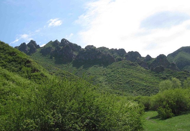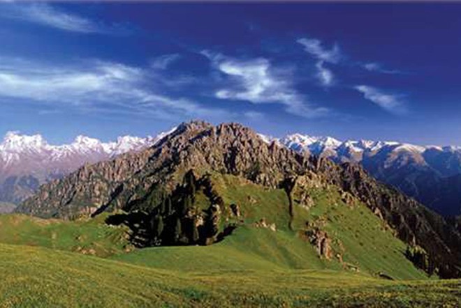 馬牙山位于天池西南,距天池約3公里,深藏于博格達(dá)蜂的山巒中,西臨瑤庫(kù)爾,北連燈桿山。山休長(zhǎng)約5公里,峰高海拔3056米。背靠皚皚雪峰,面向粼粼冰池。在這里游覽觀賞,即可盡得奇峰異石之妙,也可探窺大自然的神秘。馬牙山頂,尖石林立,遠(yuǎn)看好像一排排巨大的馬齒,故名。馬牙山斷崖崔嵬,石峰林立;遠(yuǎn)望猶如一排馬牙,仰視宛若萬(wàn)笏朝天;亂石爭(zhēng)奇,疊巖競(jìng)秀,令人目眩神迷。馬牙山這種景觀是巖石風(fēng)化作用造成的。哈薩克人把馬牙山稱為“瑪依阿散”,意思是酥油之山。馬牙山頂比較平坦,是一片肥美的草原,夏季長(zhǎng)滿了酥油草,盛開著各色鮮花。站在這里環(huán)顧四揍走運(yùn)四周,北面的天池風(fēng)光盡收眼底,東面的博格達(dá)峰和南面的雪山云霧似乎近在咫尺,而西面烏魯木齊的舍田邊也歷歷在目。