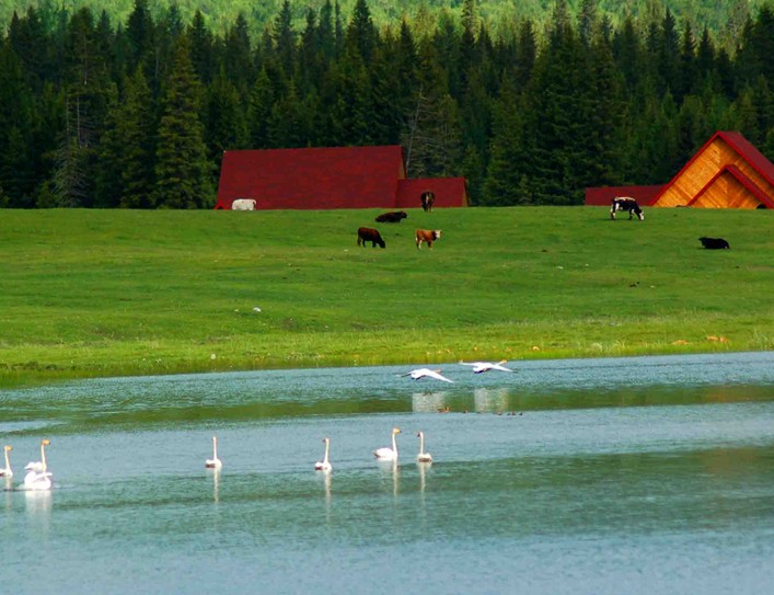 在新疆巴音布魯克草原中心地帶的巴音烏魯鄉(xiāng)以北 2公里處,有一條東西長(zhǎng)30公里、南北寬10公里的高山湖泊,海拔2500~3000米,湖水瀠回如帶、清澈見底,水中生長(zhǎng)著大量水生植物,四周群山環(huán)抱,綠草如茵,高山雪嶺倒映湖中,形成神奇迷離的自然景觀。每逢春末夏初,冰雪消融,大地復(fù)蘇,旅居在印度、緬甸、巴基斯坦,甚至遠(yuǎn)到黑海、紅海和地中海沿岸諸國(guó)的天鵝和雁鷗,不遠(yuǎn)萬里。