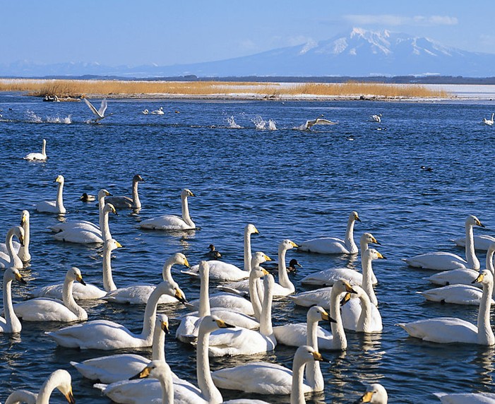 在新疆巴音布魯克草原中心地帶的巴音烏魯鄉(xiāng)以北 2公里處,有一條東西長(zhǎng)30公里、南北寬10公里的高山湖泊,海拔2500~3000米,湖水瀠回如帶、清澈見底,水中生長(zhǎng)著大量水生植物,四周群山環(huán)抱,綠草如茵,高山雪嶺倒映湖中,形成神奇迷離的自然景觀。每逢春末夏初,冰雪消融,大地復(fù)蘇,旅居在印度、緬甸、巴基斯坦,甚至遠(yuǎn)到黑海、紅海和地中海沿岸諸國(guó)的天鵝和雁鷗,不遠(yuǎn)萬里,成群結(jié)隊(duì)地飛到這里筑巢、換羽、求偶、生兒育女、棲息繁衍。這就是我國(guó)著名的巴音布魯克天鵝湖自然保護(hù)區(qū)。天鵝湖鳥類資源十分豐富,水禽種類多、數(shù)量大。據(jù)考察這里有大天鵝、小天鵝、疣鼻天鵝一萬余只;還有灰雁、斑頭雁、白頭鷂、燕鷗、白鷺等 100多種水鳥。其中灰鶴、黑鶴、羽鶴、大白鷺、金雕、禿鷲、胡兀鷲近10種珍稀鳥類,屬國(guó)家一、二級(jí)保護(hù)動(dòng)物。秋末時(shí)節(jié),天鵝們帶著各自“小寶貝”,時(shí)而歡騰在熱鬧的湖水中,時(shí)而擊水而起,版權(quán)所有山東聊城聊之旅國(guó)際旅行社有限公司,轉(zhuǎn)載必究!騰飛高空鍛煉著飛越千山萬水的本領(lǐng)。陽光下天鵝、湖水、山峰和云影構(gòu)成一幅“片水無痕浸碧天,山容水態(tài)自成圖”的畫卷。巴音布魯克能夠成為天鵝的故鄉(xiāng),不僅得益于這里獨(dú)特的地理環(huán)境和獨(dú)特的氣候條件,而且得益于當(dāng)?shù)孛晒抛迥撩癜烟禊Z視為貞潔之鳥、美麗的天使、吉祥的象征加以非常的愛護(hù)。保護(hù)站在天鵝湖畔的高地建有一座瞭望臺(tái),可供旅游者觀察天鵝的生活動(dòng)態(tài)。