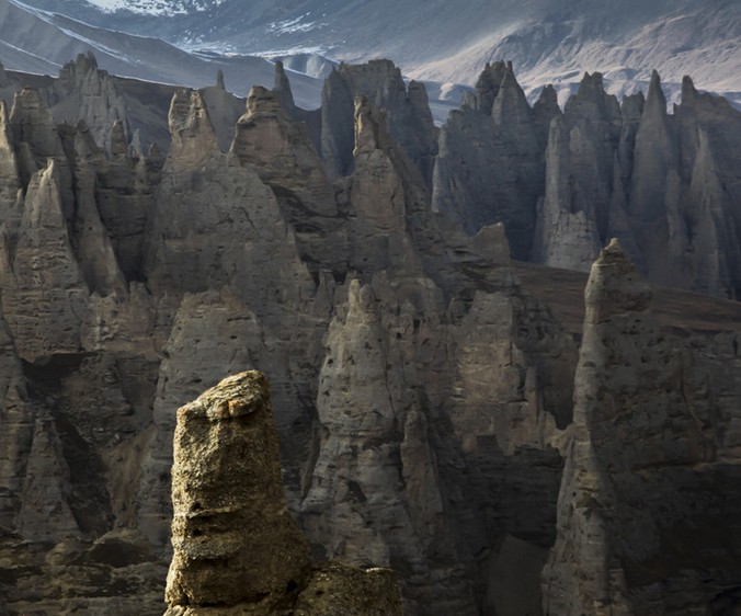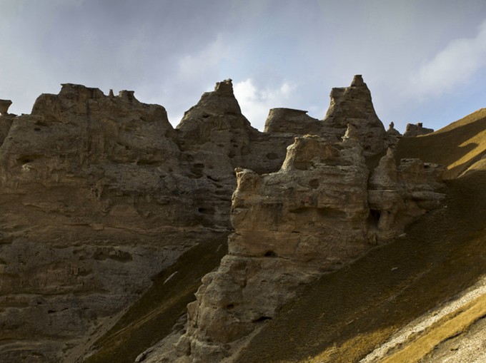 天山石林又稱奎克烏蘇石林,因位于天山山脈西段、那拉提山北麓的奎克烏蘇達(dá)坂之下而得名,長9000米、寬約5000米,相對高度30米,大自然的鬼斧神工,把石林雕刻得奇形怪態(tài),千姿百態(tài)。從巴音布魯克草原向西南行走100公里,登上科克烏蘇達(dá)坂頂端,放眼望去,在雪峰環(huán)抱中,好象有一片原始森林散落在一條深谷兩面的山坡上,走近一看,原來不是松柏,而是一片亭亭玉立的“石林”。經(jīng)過大自然幾百萬年的洗禮,這沙巖石林被雕塑的千姿百態(tài)、光怪陸離。有的宛如座座古堡,有的仿佛行人走獸,栩栩如生;有的象刀槍劍戟,直插藍(lán)天,其間還布滿了大窟小洞,通幽曲徑。石林地處天山深處,交通不便,反倒成了天然野生動(dòng)植物的保護(hù)圈。