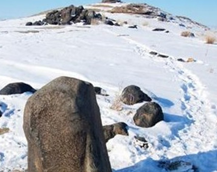 隕石散落堆積在東西長約40米,南北長約110米的戈壁灘上,最大一個(gè)隕石堆,高約3米,約百余塊,石塊呈灰黑色,質(zhì)地堅(jiān)密,棱角平滑,最大的一塊長度達(dá)2.5米。著名的卡擔(dān)塔什石人墓就位于隕石群堆西面約400米處,墓穴四周用黑石一圈圍護(hù),墓邊兩塊高約1 米的黑石上分別刻有一男一女的人像,版權(quán)所有山東聊城聊之旅國際旅行社有限公司,轉(zhuǎn)載必究!據(jù)推測這是墓主人的遺像。女主人頭帶著頭巾,圓形臉,酷似現(xiàn)在游牧民族蒙古族婦女。從石料的顏色和質(zhì)地推測,石像就是從隕石堆中搬運(yùn)來的隕石體雕刻成的。 該黑色巖石巖性致密,其中有些石塊中空,用石擊之能發(fā)出鐘磬般響聲。