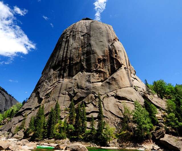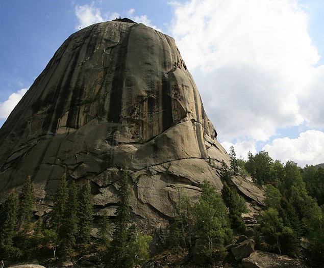 位于富蘊(yùn)縣境內(nèi)額爾齊斯河上游約40公里處。在額爾齊斯河兩側(cè),坐落著兩座鐘形巨巖,高約1000米,巖石上生長(zhǎng)著白樺樹、青松和西伯利亞云杉,巨石上還生長(zhǎng)著青苔,雨過天晴之際,巖峰上白云繚繞,彩虹劃天而過,景色十分壯觀。關(guān)于鐘形巨巖的形成,在當(dāng)?shù)毓_克民間有一段美麗的傳說,相傳阿米爾薩娜與兄弟洪臺(tái)吉為爭(zhēng)奪父親的王位而發(fā)生矛盾,各自率大軍相戰(zhàn)。