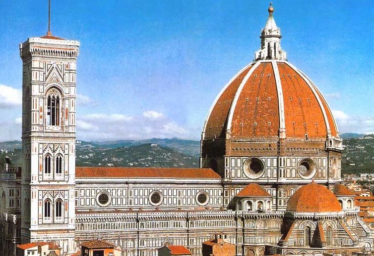 建于1296年的圣瑪利亞?德?tīng)?弗洛雷大教堂,為佛羅倫薩眾教堂之首。這是一座十分輝煌的羅馬式建筑,從設(shè)計(jì)開(kāi)始一直到整座建筑完工,它是幾代藝術(shù)家勞動(dòng)的結(jié)晶。它那由白、綠和粉紅色條紋大理石砌成的外墻,極具魅力,而那獨(dú)特的大圓頂和那別致的鐘樓為其精華所在。您若登樓俯瞰,佛羅倫薩那迷人的古城風(fēng)貌一定會(huì)令您難忘。