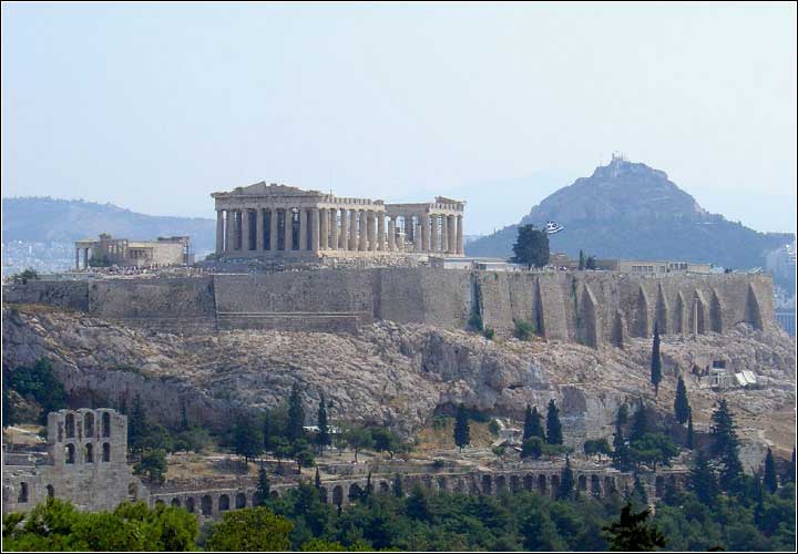 雅典,希臘語為“阿克羅波利斯”,原意為“高處的城市”或“高丘上的城邦”,距今已有近2600年的歷史。雅典衛(wèi)城遺址位于今雅典城西南,建造在海拔150米(此數(shù)據(jù)據(jù)中文版美國國家地理雜志2004年8月號,另一資料為156米)的石灰?guī)r山岡上,是祭祀雅典守護(hù)神雅典娜的神圣地,建筑群建設(shè)的總負(fù)責(zé)人是雕刻家菲迪亞斯。衛(wèi)城,原意是奴隸主統(tǒng)治者的圣地,古代在此建有神廟,同時又是城市防衛(wèi)要塞。