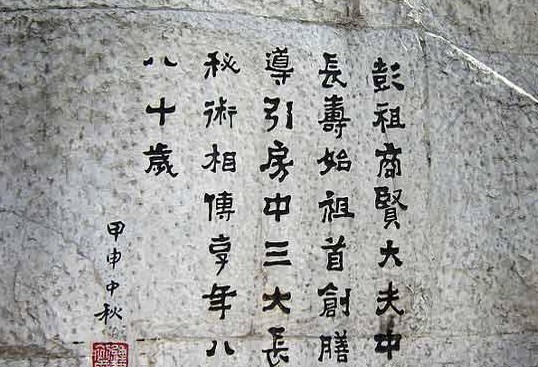 北魏酈道元《水經注》“獲水”條云:(彭城)城之東北角,起眉樓於其上,號曰彭祖樓?!兜乩碇尽吩?,彭城縣,古彭祖國也。《世本》曰,陸終之子,其三曰籛,是為彭祖。彭祖城是也。下曰彭祖冢。彭祖長年八百,綿壽永世,於此有冢,蓋亦元極之化矣!