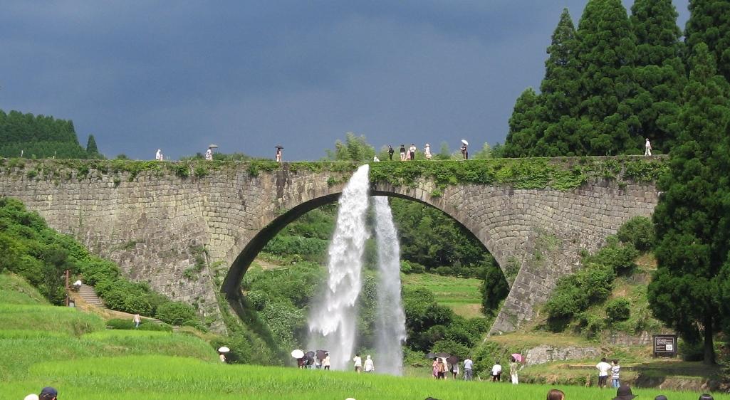 通潤橋建于1852年(嘉永5年)年12月至1854年(嘉永7年)7月29日,是日本最大的拱橋式水道橋。1960年被指定為國家重要文化財產(chǎn)。