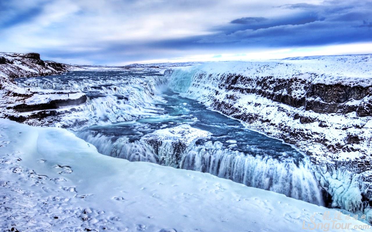 黃金瀑布在哥吉爾噴泉北面十公里處,是冰島人最喜愛的瀑布,也是歐洲著名的瀑布之一,傾瀉而下的瀑布濺出的水珠彌漫在天空,在陽光照射下形成道道彩虹,仿佛整個瀑布是用金子鍛造成的,景象瑰麗無比,令游客流連忘返。 黃金瀑布(Gullfoss)位于冰島首都雷克雅未克以東北125公里外,寬2500米,高70米,為冰島最大的斷層峽谷瀑布, 塔河在這里形成上、下兩道瀑布,下方河道變窄成激流。1975年農(nóng)莊主人將它送給冰島政府作為自然保留區(qū)?,F(xiàn)在這里方圓七百公里內(nèi),有鬼斧工的國會斷層、碧草如茵藍(lán)天白云倒影的國會湖、堙霧繚繞直沖云霄的間歇噴泉區(qū)等,是冰島風(fēng)景最迷人的精華區(qū)。
