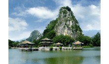 廣東肇慶市的星湖風(fēng)景名勝區(qū),是中國南方著名的旅游勝地。很多游人對(duì)它評(píng)價(jià)很高,認(rèn)為它兼有杭州西湖和廣西桂林的勝景。星湖位于肇慶市北郊4公里處,湖面約8000畝,大小和西湖相近。整個(gè)湖面被蜿蜒交錯(cuò)的湖堤劃分為五個(gè)湖:東湖、青蓮湖、中心湖、波海湖、里湖。湖堤總長20余公里,堤上楊柳、鳳凰木成行,宛如幾條綠色帶子飄落在碧澄的水面上。