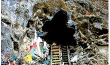金嘎溶洞,是一個自然形成的溶洞,位于西藏日喀則江孜縣金嘎鄉(xiāng)。此溶洞以其神奇?zhèn)髡f與充滿佛教氣息著稱。如同一堆鋒利的兵器,整個形態(tài)象度母靜坐。洞口寬約8米,高近2米,洞深40余米,自上而下有自然形成的蓮花生大師、南木朗?多吉堆窘大譯師等六個修行洞,及自然形成的形態(tài)逼真的米拉日巴、十六羅漢、大象、蝎子、天龍、地蛇、月亮、太陽等80余種畫面。