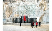 《水泊梁山記》是著名書畫大師范曾2002年專為水泊梁山風(fēng)景區(qū)撰寫。先生懷著對(duì)英雄故里的一腔深情,慷慨揮毫、步其先人范仲淹《岳陽樓記》韻,全文368字,描述了水泊梁山河岳闊峻、草木蕭森的雄奇景象?!端戳荷接洝反笮湍ρ率?,通高7米、長(zhǎng)14米,距地面10余米,單字最大55厘米見方,最小字30厘米見方,通篇368字占地近100平方米,氣勢(shì)恢弘、蔚為大觀,形成了南有《岳陽樓記》、北有《水泊梁山記》的文化格局。為旅游勝地水泊梁山再添景觀,現(xiàn)為水泊梁山風(fēng)景區(qū)的主要景點(diǎn)之一。與梁山粗獷豪放的山體及周圍環(huán)境交融,深化了景區(qū)的水滸文化內(nèi)涵,成為進(jìn)入梁山風(fēng)景區(qū)山寨景區(qū)的標(biāo)志性景觀,其所在廣場(chǎng),亦成為在梁山舉行的與水滸、旅游有關(guān)的大型集會(huì)的場(chǎng)所之一。